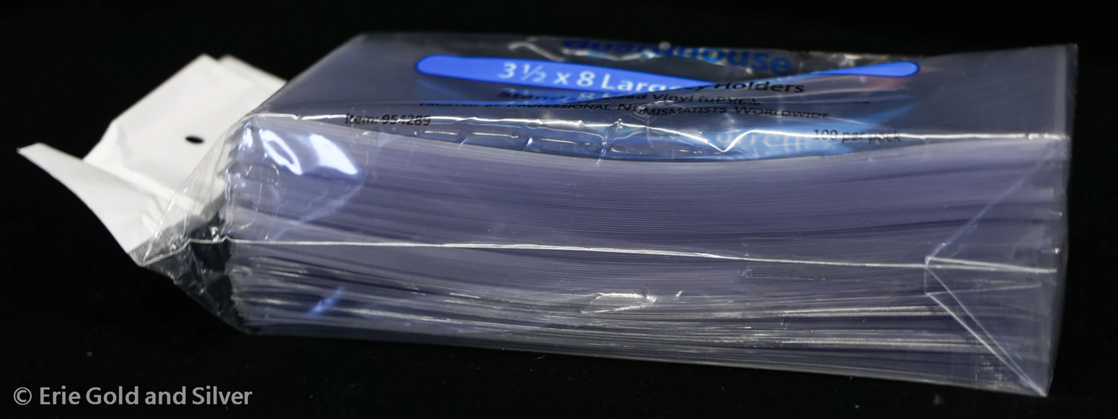Guardhouse 100 Pack 3 1⁄2 x 8 Inch Standard Vinyl Large Currency Holders Sleeves