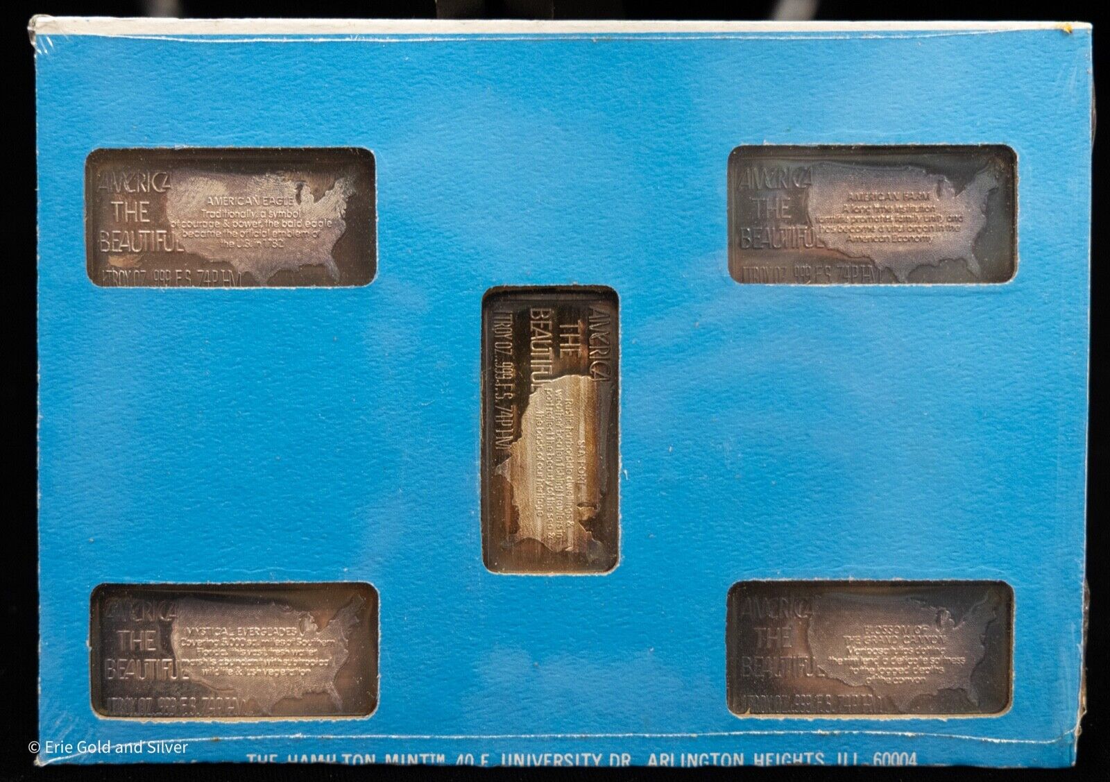For sale is a Hamilton Mint America The Beautiful .999 1 oz silver bars x5 Eagle Farm Port. View pictures for details and condition, the item pictured is the exact item you will receive. Feel free to contact us with any questions.