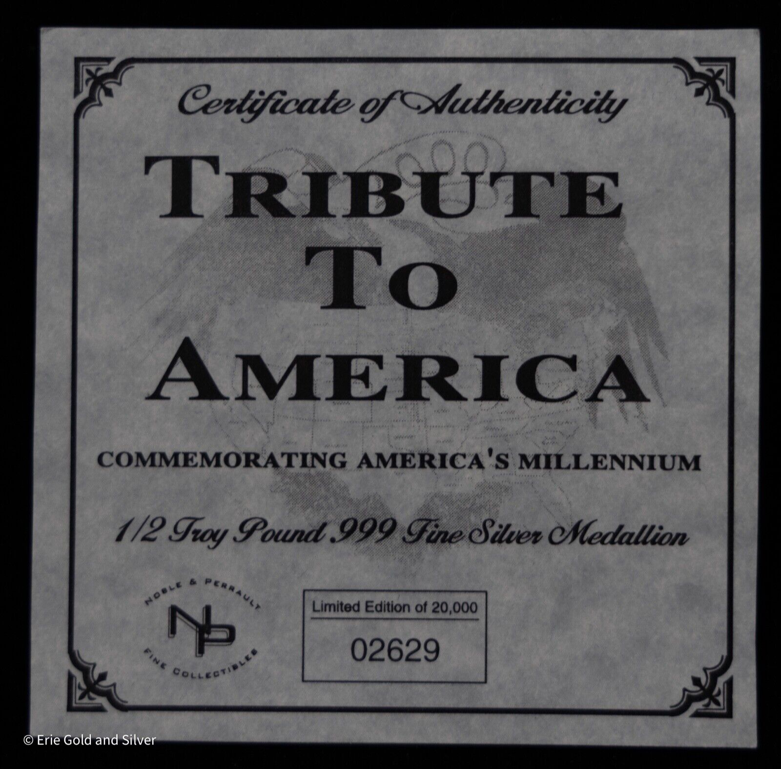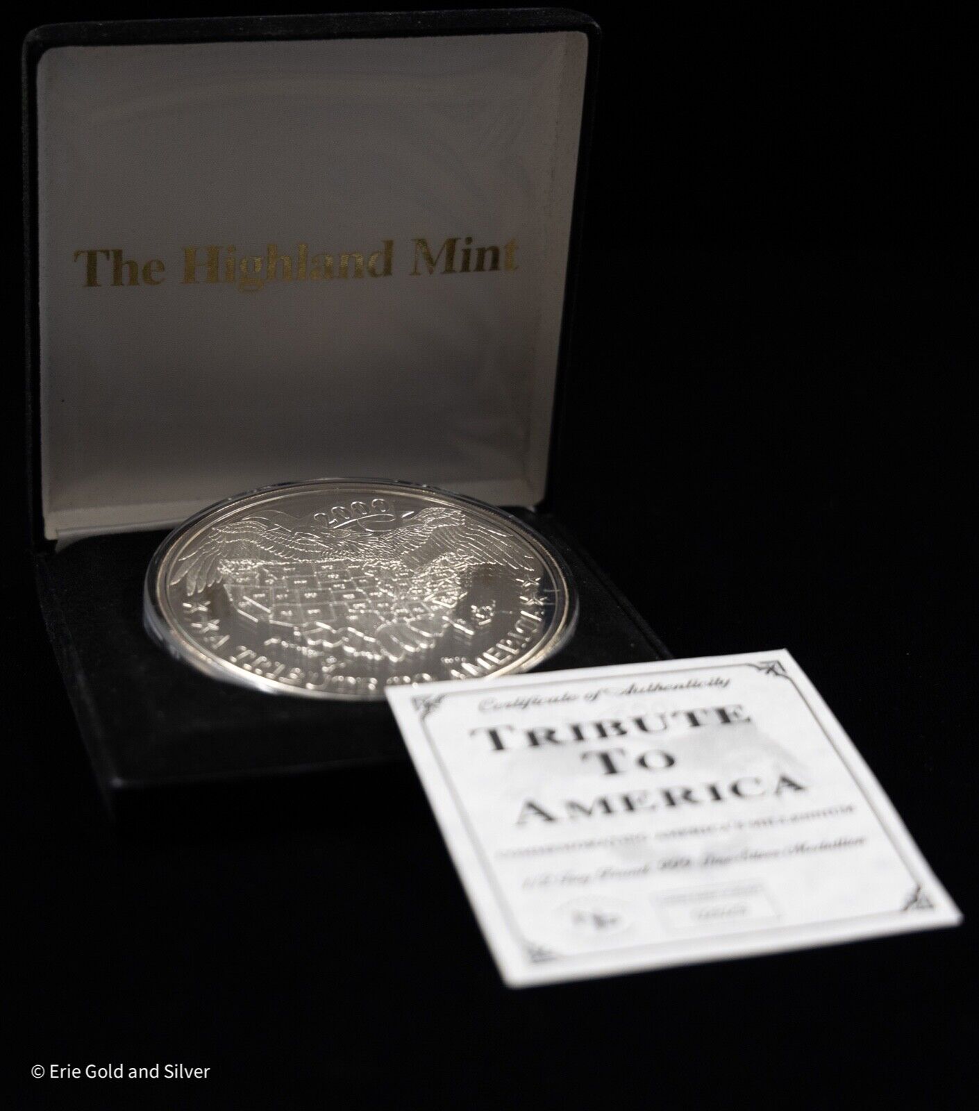 For sale is a Highland Mint Tribute To America 1/2 Troy Pound (6 ozt) .999 Silver Medallion. View pictures for details and condition, the item pictured is the exact item you will receive. Feel free to contact us with any questions.