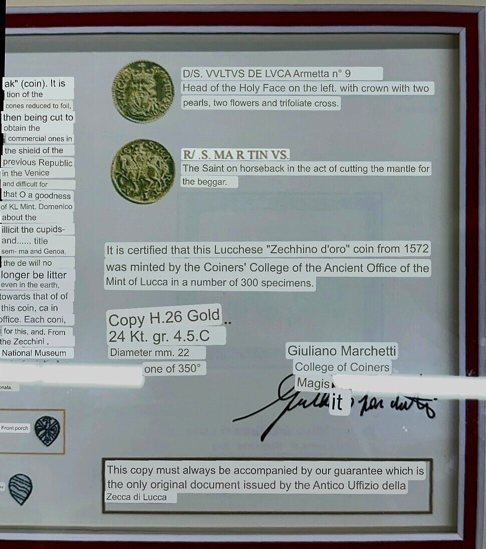 ITALY ND (1572) Gold Zecchino d' oro 999 Fine Gold Italy Tuscany 24k Medallion