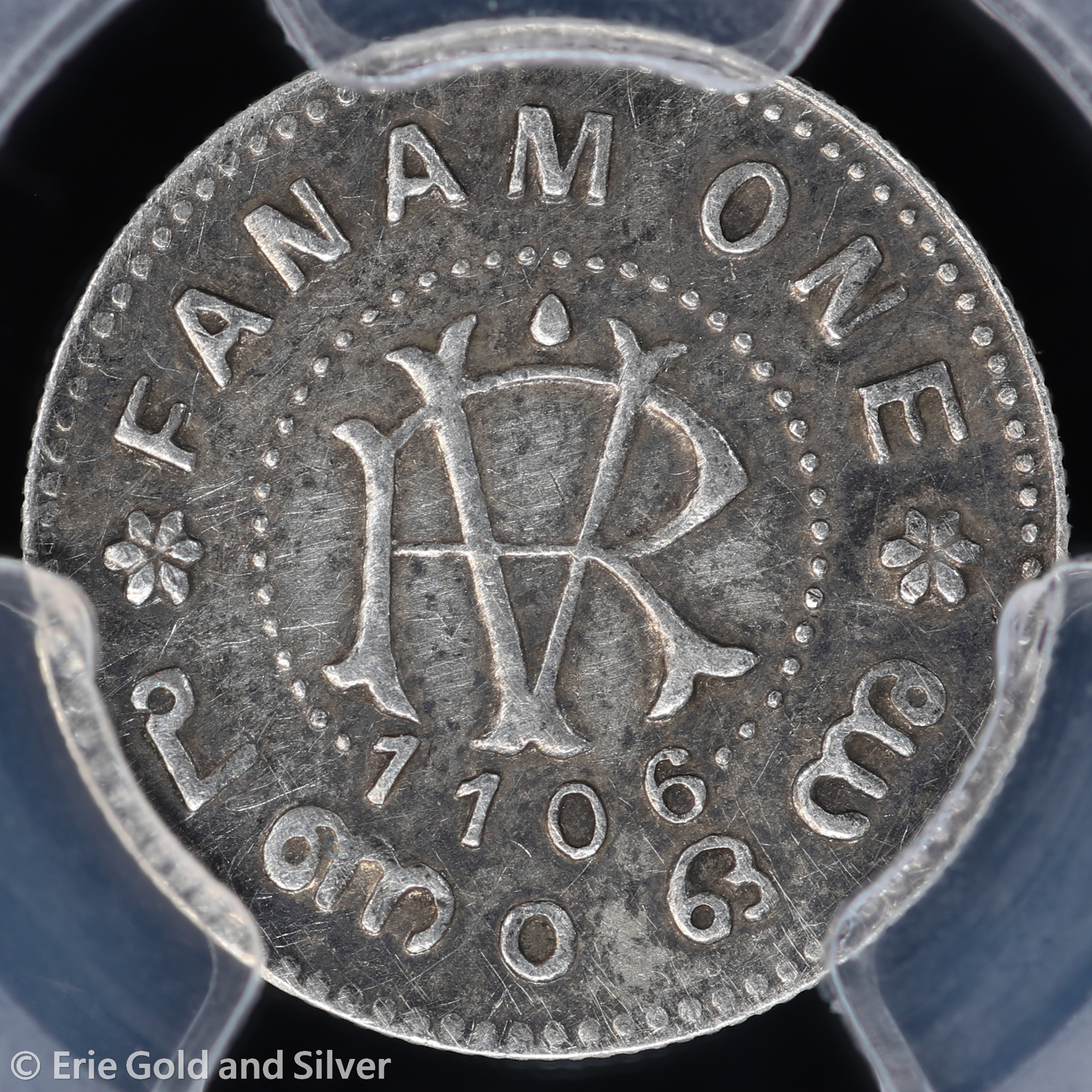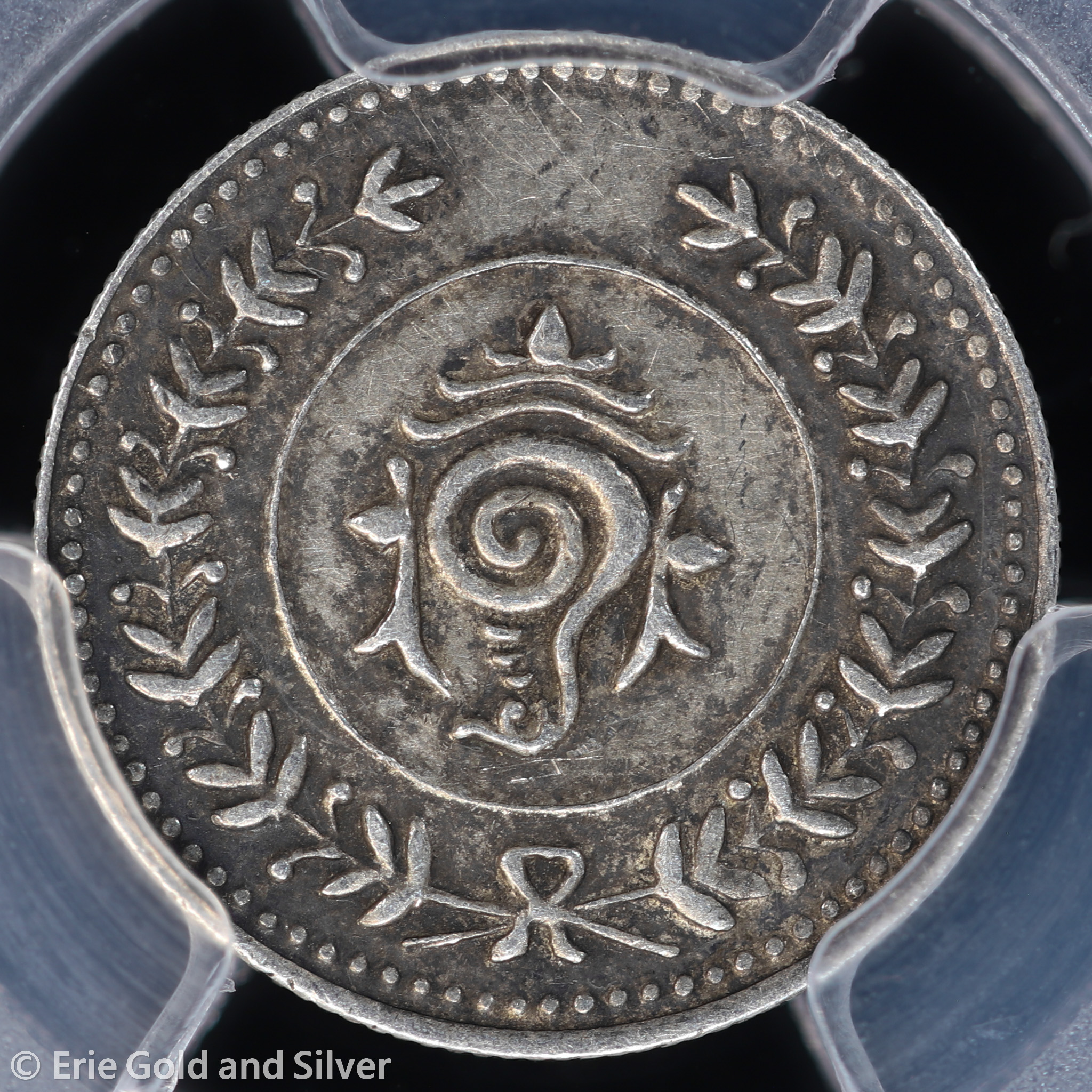 For sale is a ME1106 (1930-31) India Travancore Silver Fanam. Certified / graded by PCGS at Genuine AU Detail.