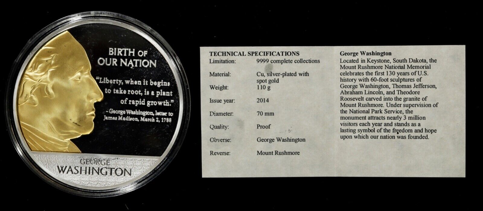 Mount Rushmore Proof Medal George Washington Birth of our Nation Silver Layered