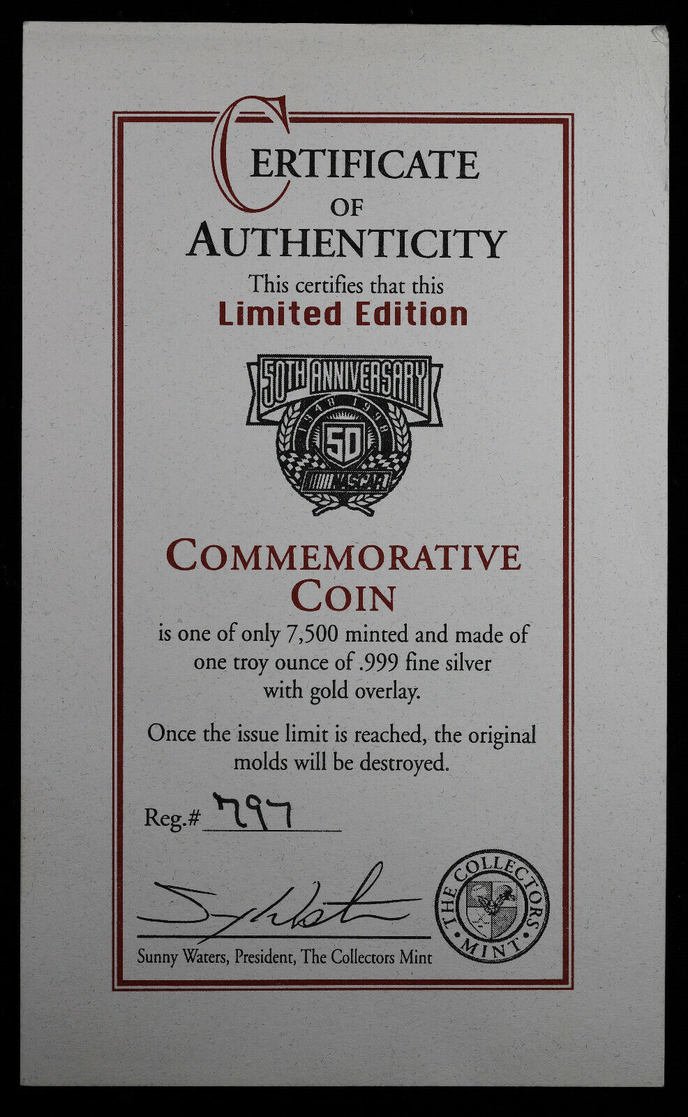 For sale is a NASCAR 50th Anniversary 1 oz Silver round. View pictures for details and condition, the coin pictured is the exact coin you will receive. Feel free to contact us with any questions.