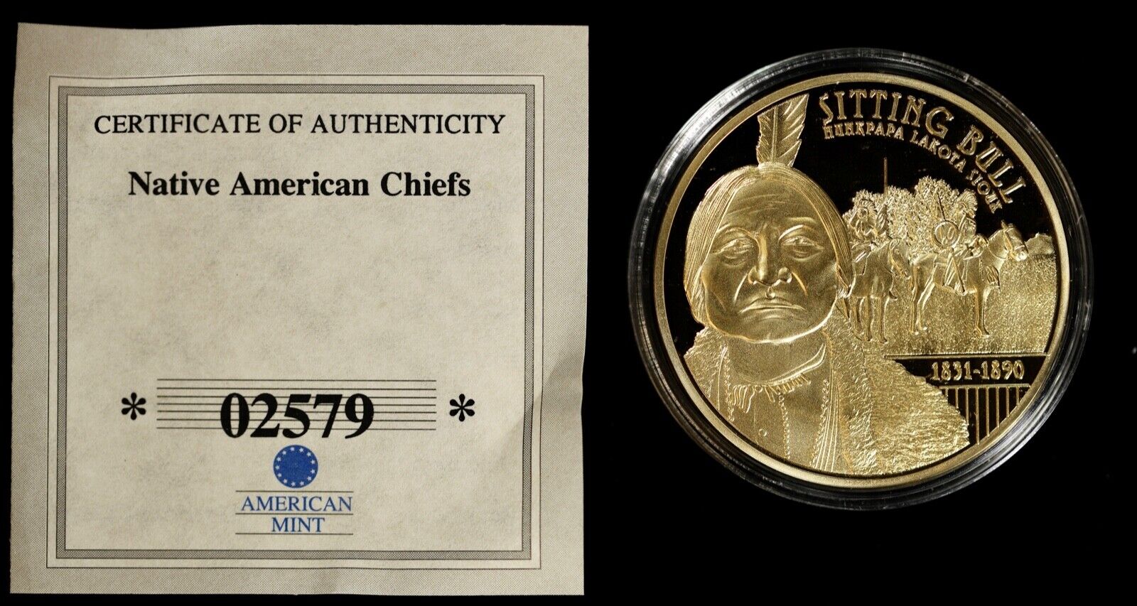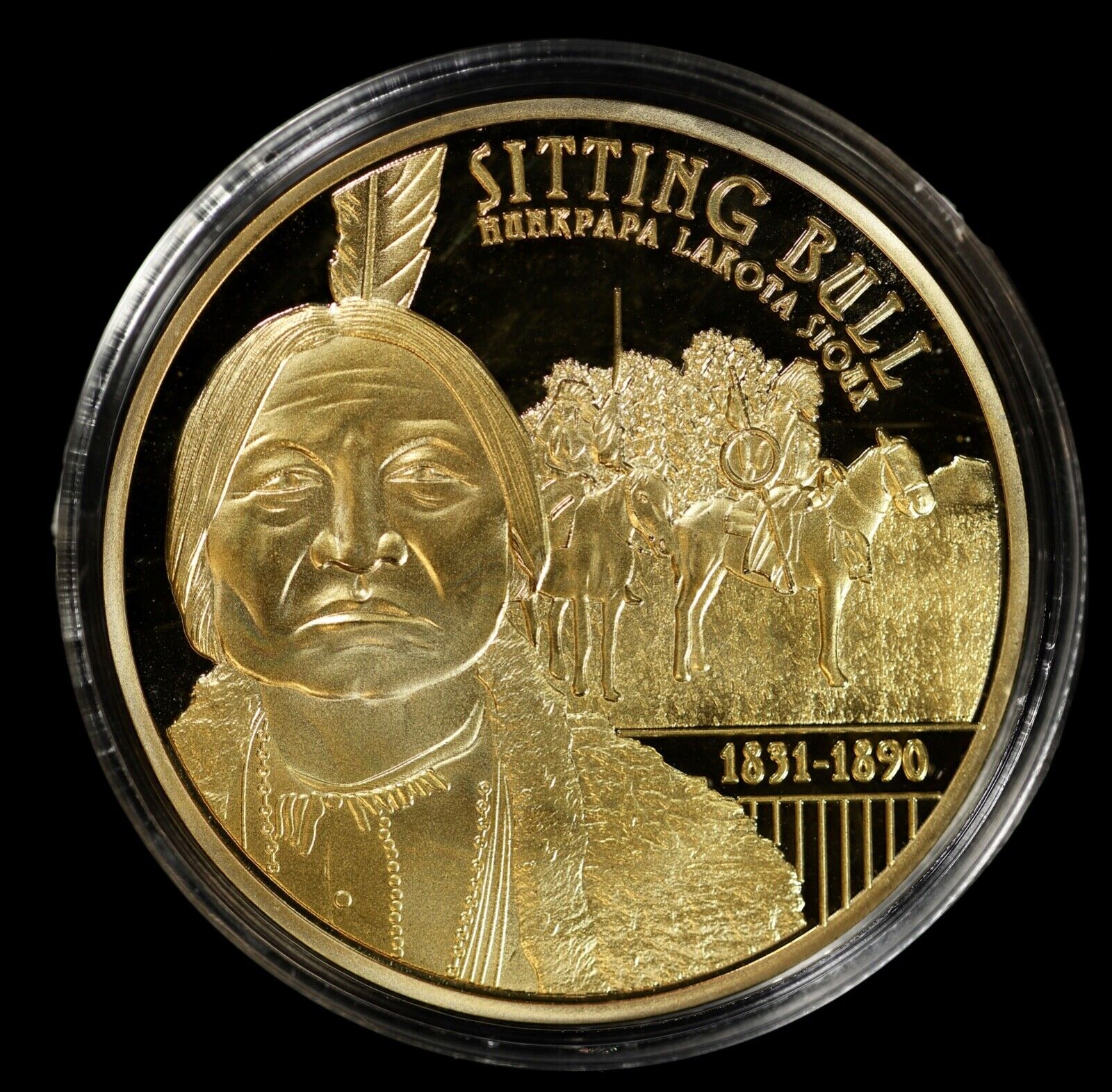 For sale is a Native American Chief Sitting Bull Hunkpapa Lakota Sioux Copper Layered in Gold. View pictures for details and condition. There are multiple available, so the coin you receive may not be the exact coin pictured, however it will be similar quality. Feel free to contact us with any questions.