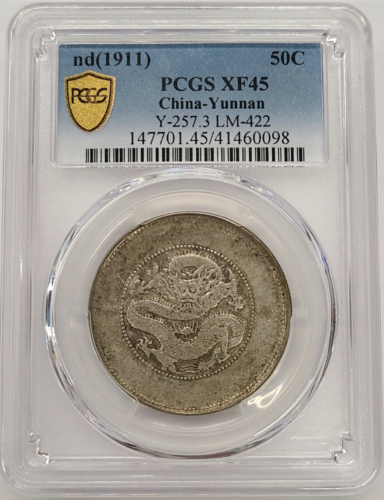 ND(1911) China Yunnan Province Silver Dragon PCGS XF 45 | LM-422 Y-257.3