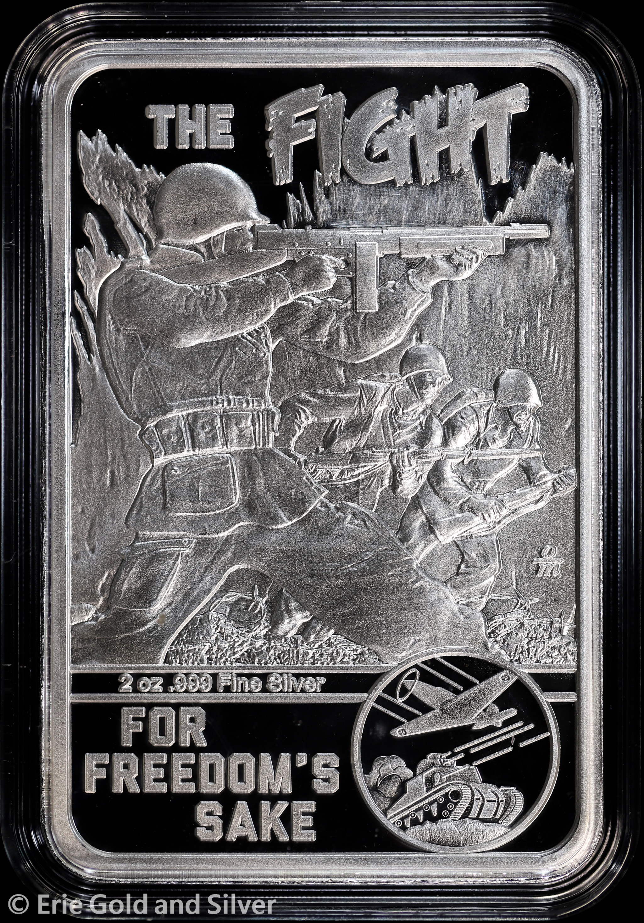 For sale is a Osborne Mint: The Fight for Freedom's Sake - Americans Will Always Fight For Liberty 2 oz Silver Colorized Bar.