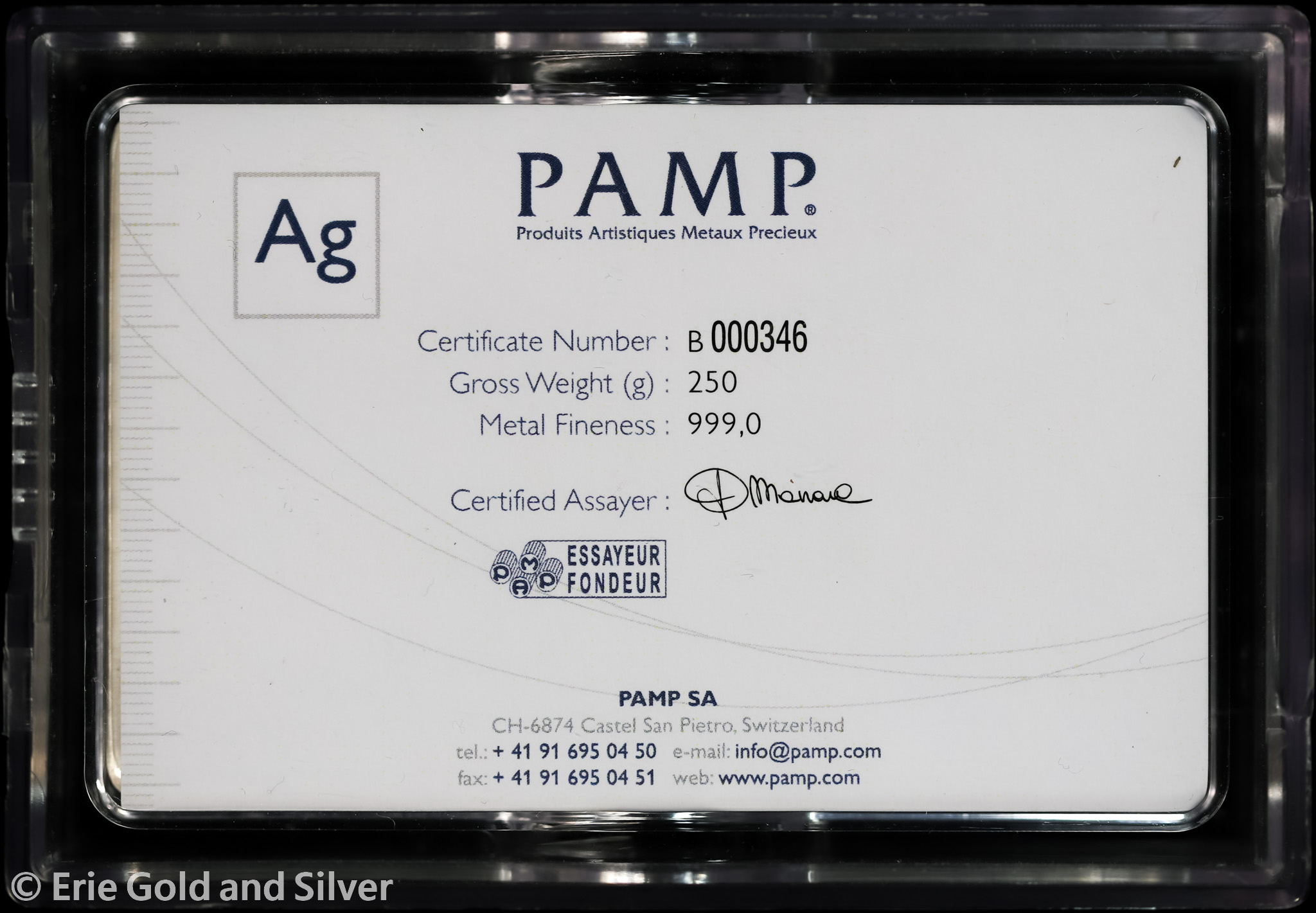 For sale is a PAMP Suisse Lady Fortuna 250g Silver Art Bar in Hard Assay w/ COA.