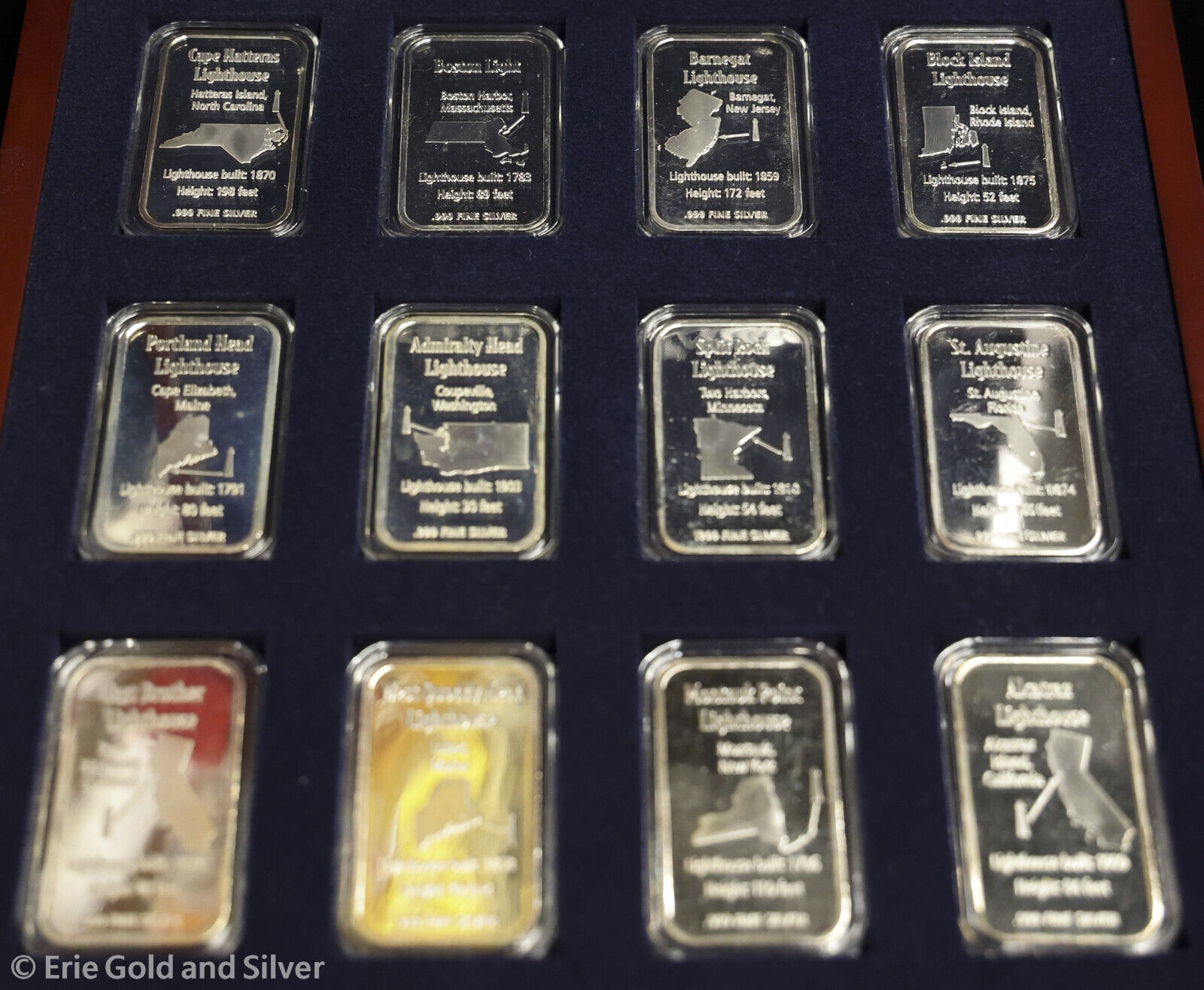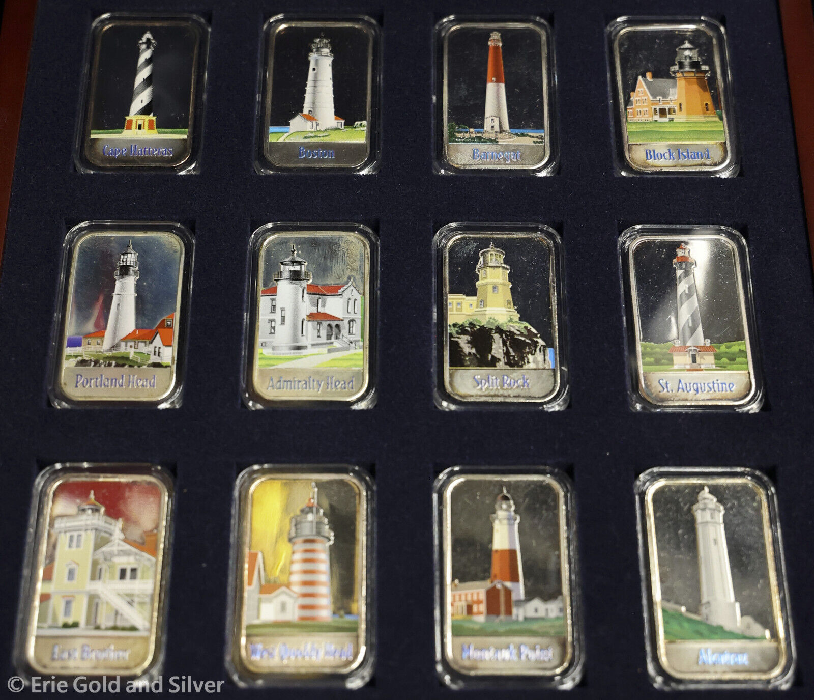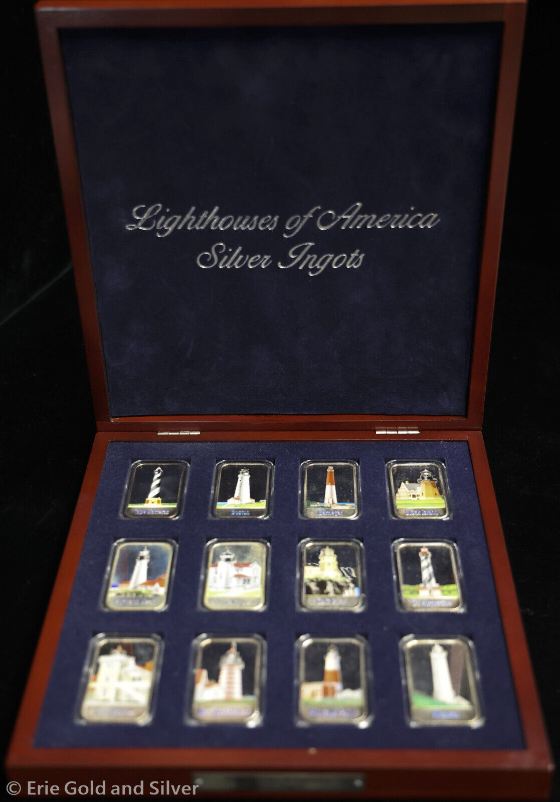 For sale is a Postal Commemorative Society Lighthouses of America 1 oz Silver Ingots 12pc Set in Display Box. View pictures for details and condition. The item pictured is the exact item you will receive. Feel free to contact us with any questions.