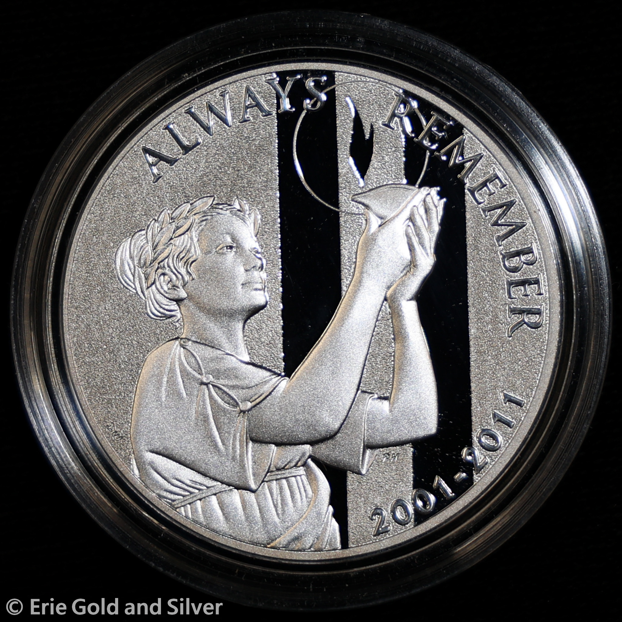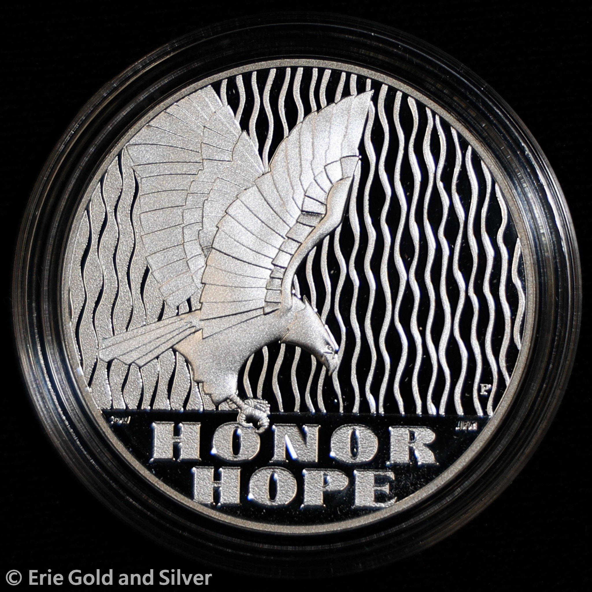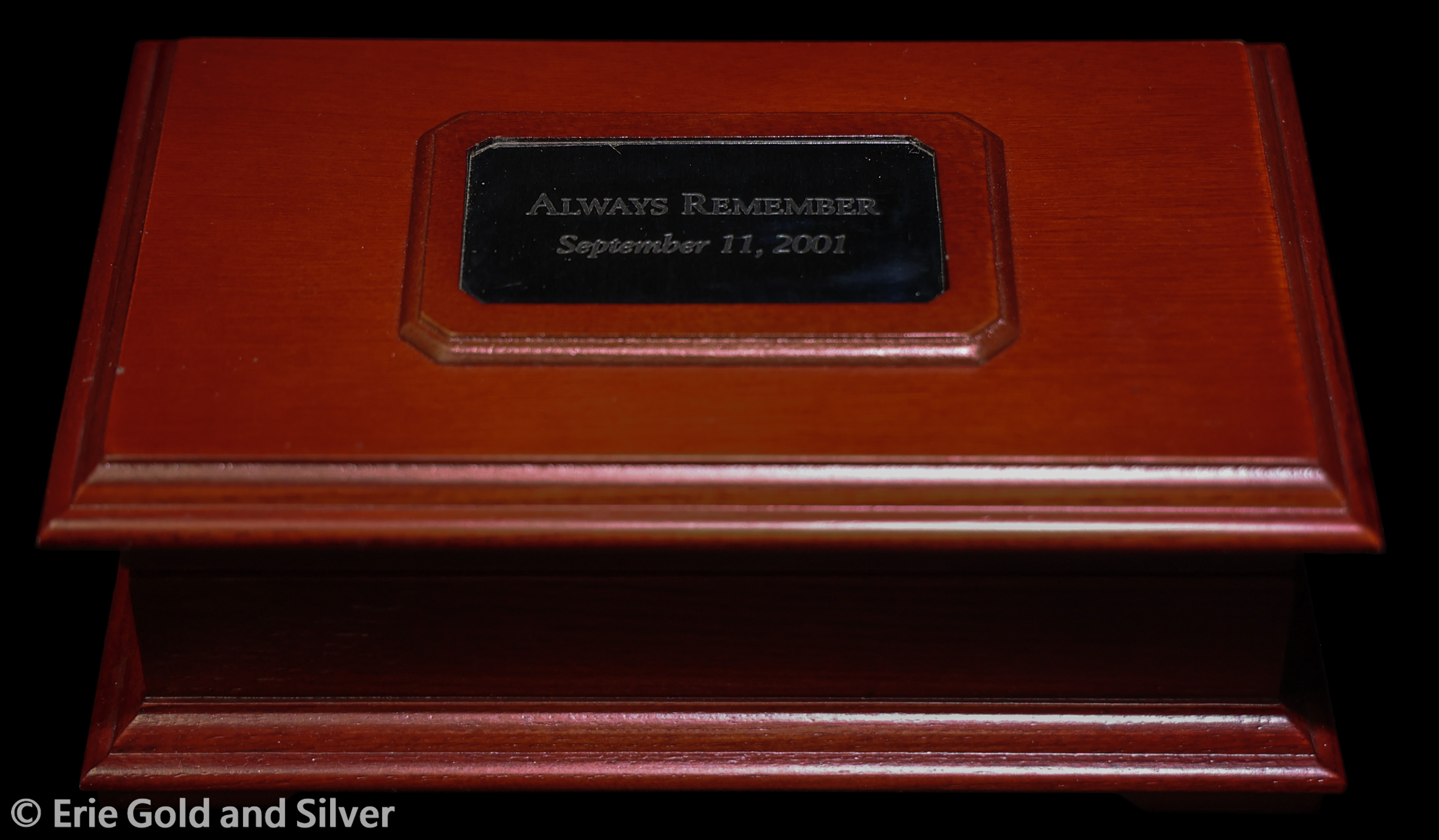For sale is a PCS September 11 Memorial Commemorative 1 oz Silver Medal & Stamp Set in Wooden Display Box.