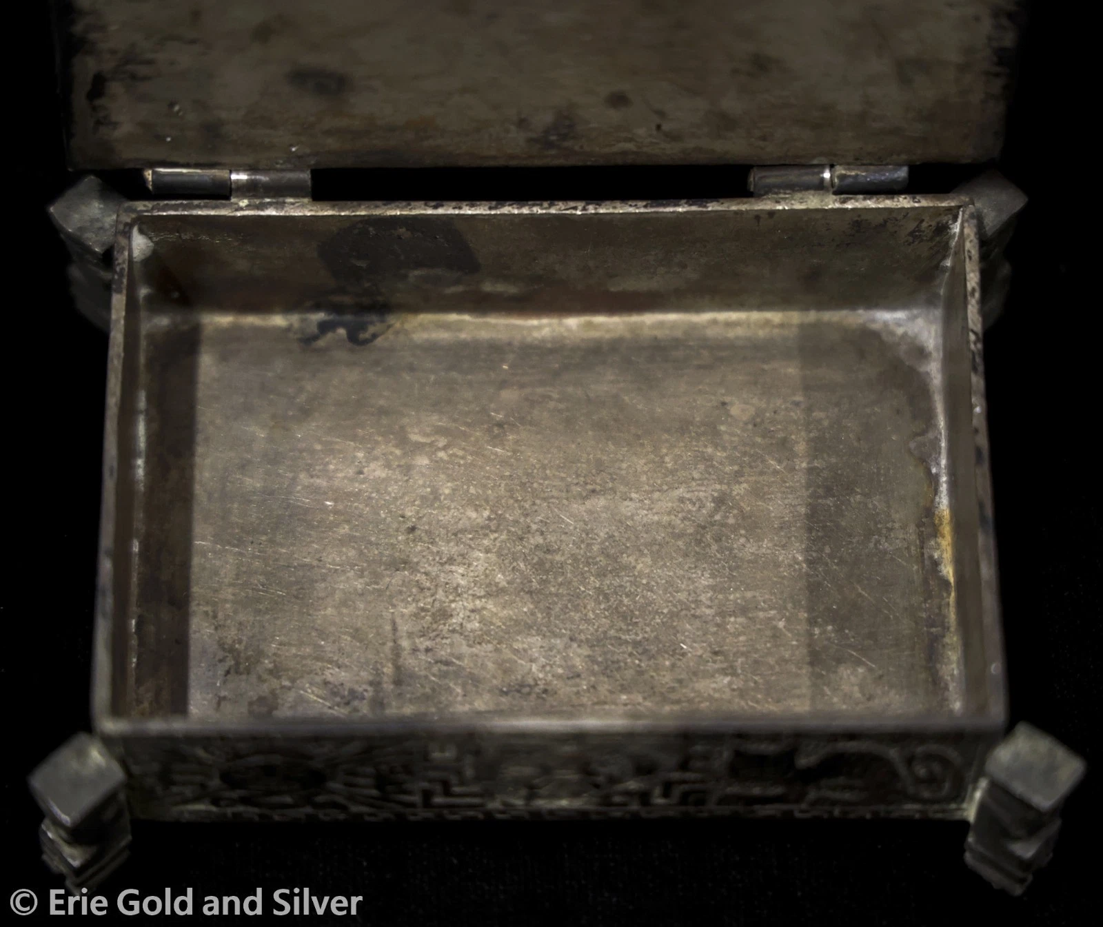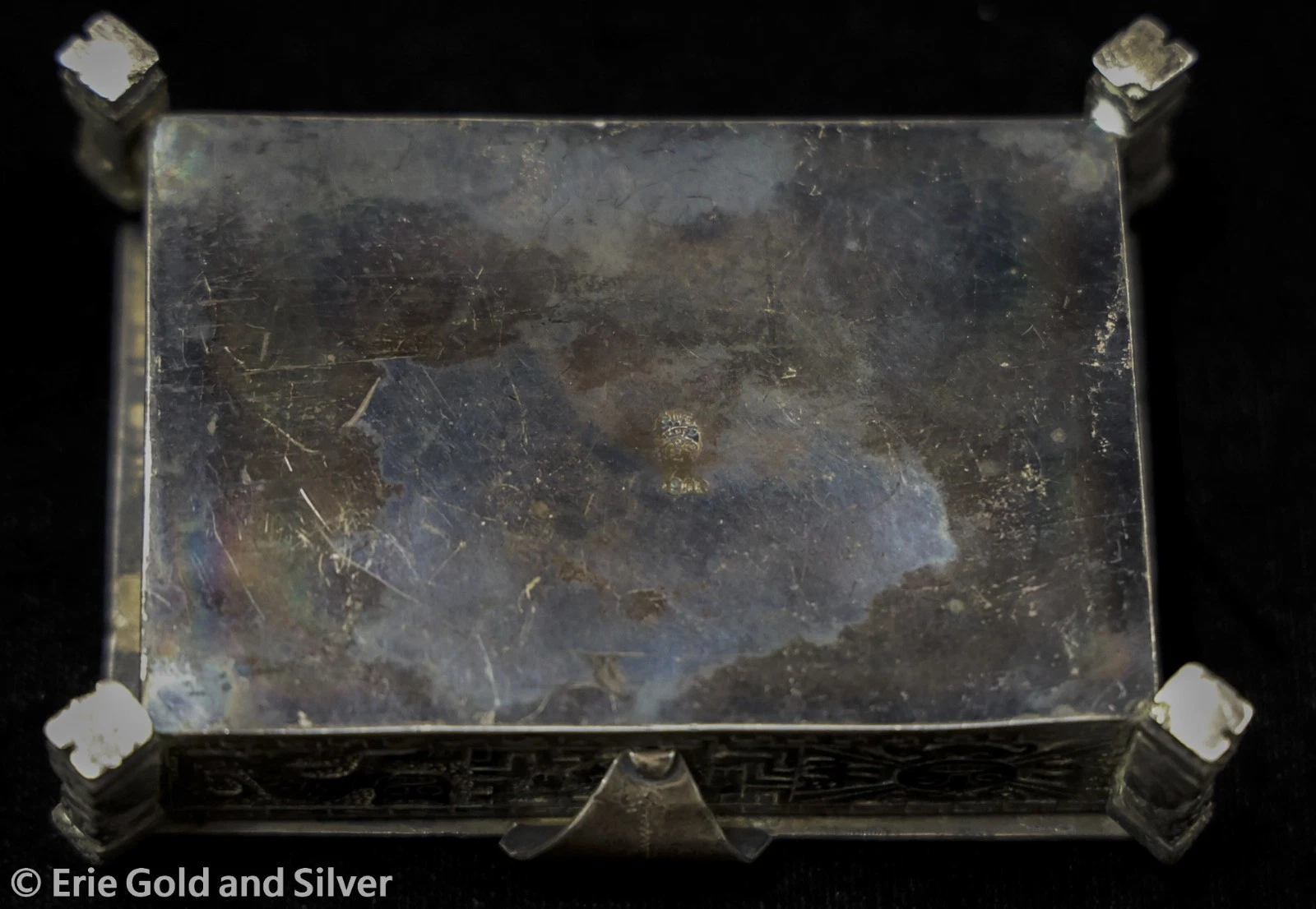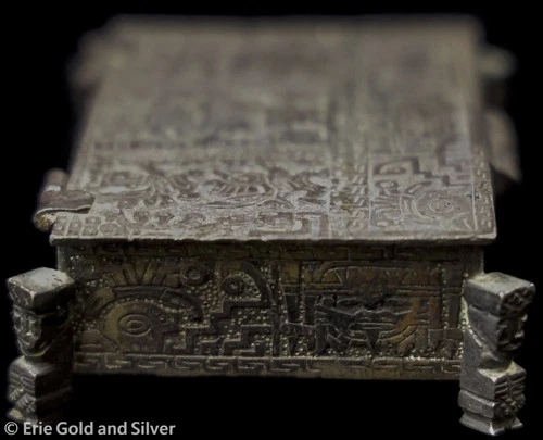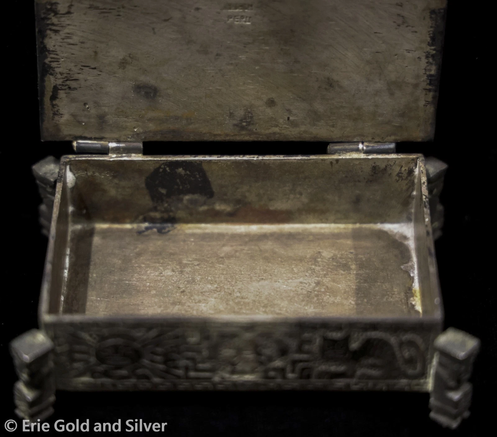 For sale is a Peru Ornate Aztec Mayan 900 Silver Footed Jewelry Box.