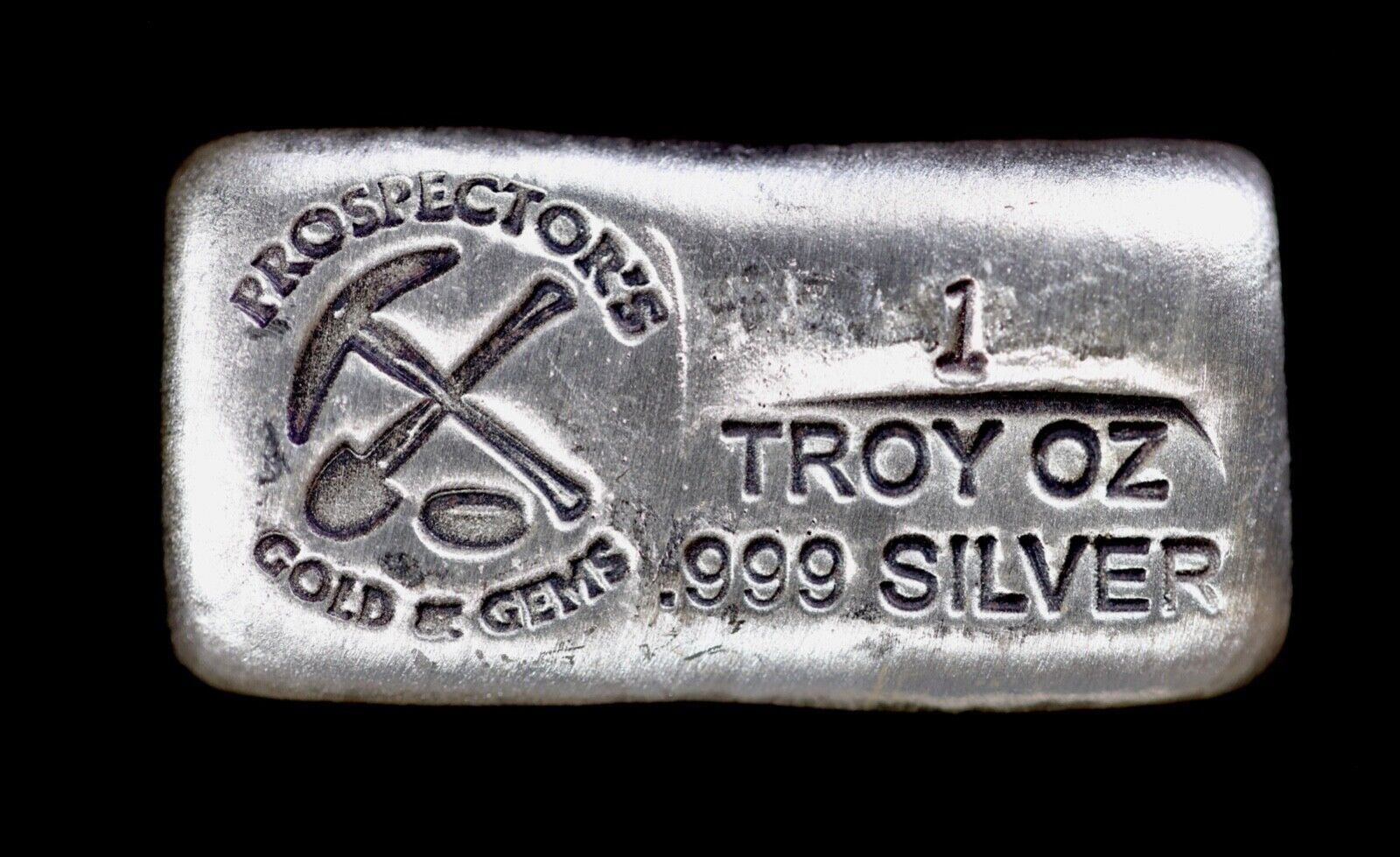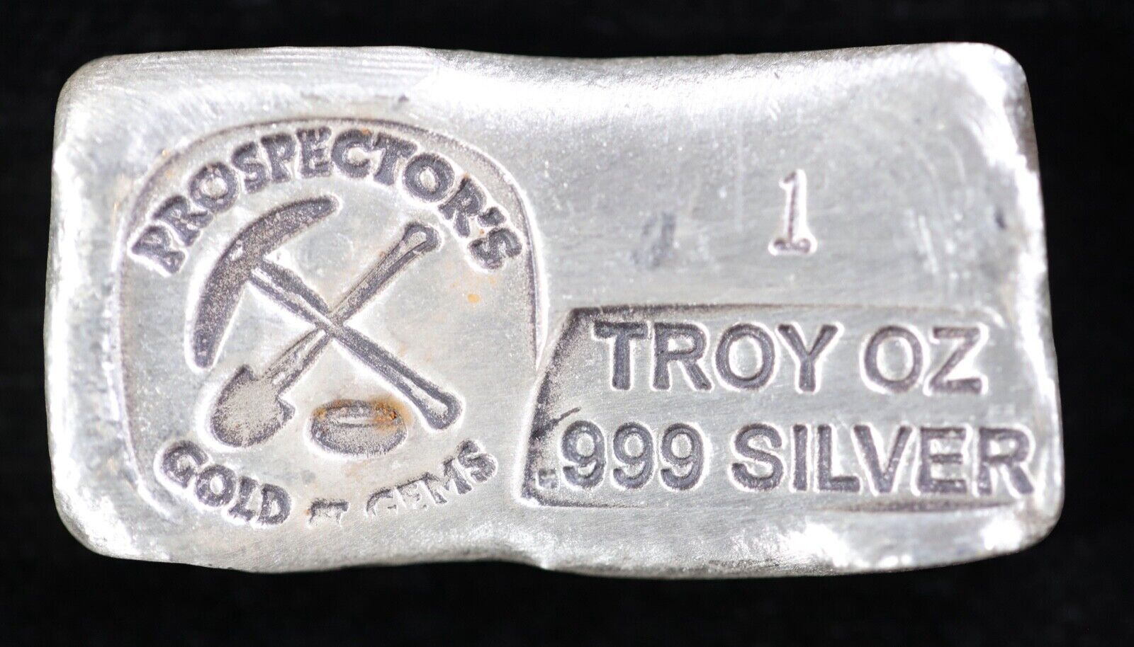 Prospector Gold and Gems 1 oz (Ounce) Poured - Loaf .999 Silver Bar