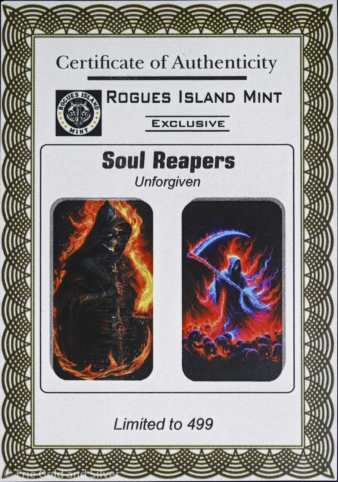 Rogues Island Mint Soul Reapers Unforgiven Colorized 1 oz Silver Bar w/ COA