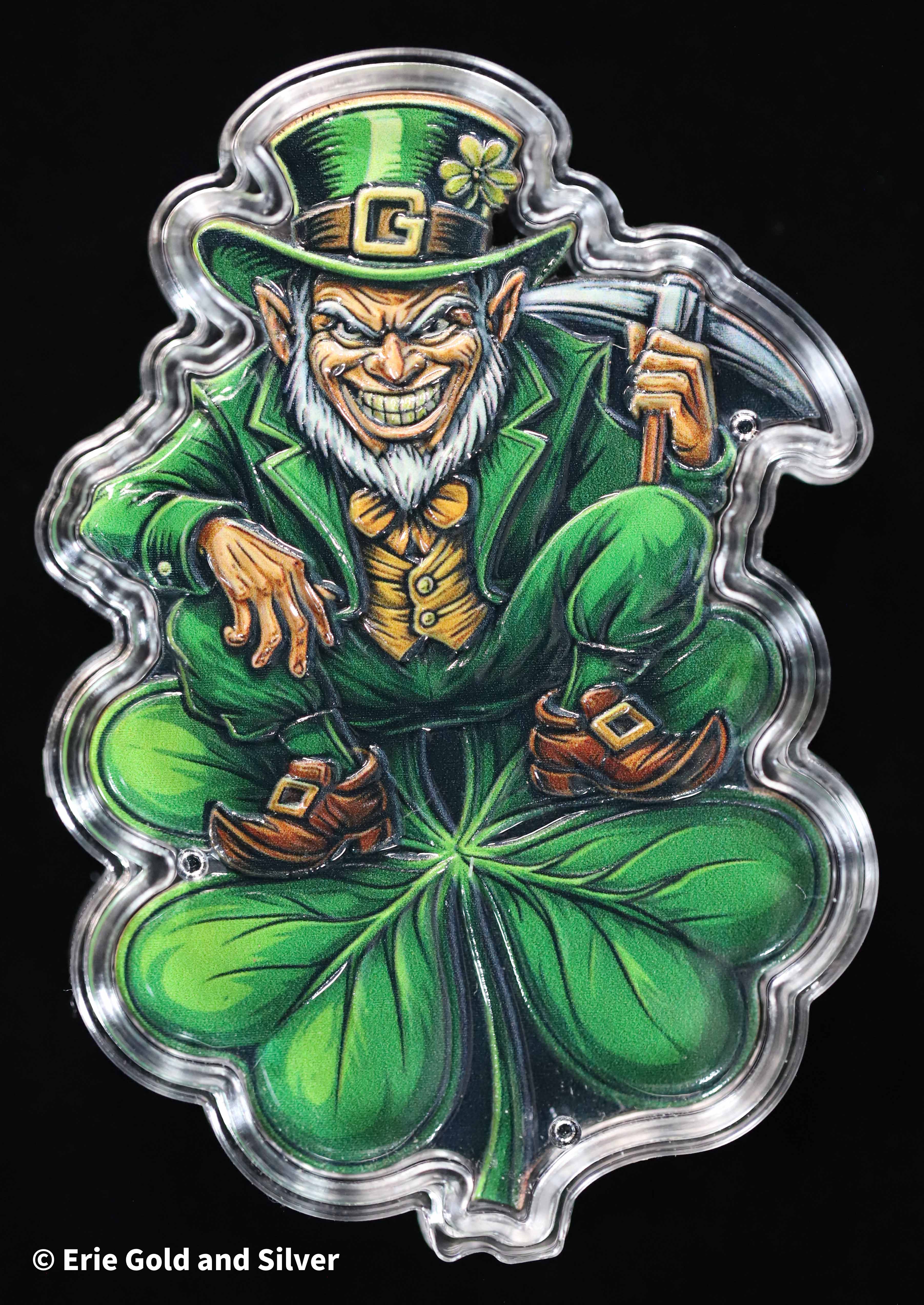 Add a bold and unique piece to your collection with the Shamrock Reaper 100 Gram .999 Copper Colorized Shaped Medal. Struck from 100 grams of .999 fine copper, this intricately shaped medal features a striking colorized design of the Shamrock Reaper, blending dark artistry with Celtic-inspired symbolism. Presented in a display box, this collectible piece is perfect for copper enthusiasts and collectors of distinctive, themed medals.