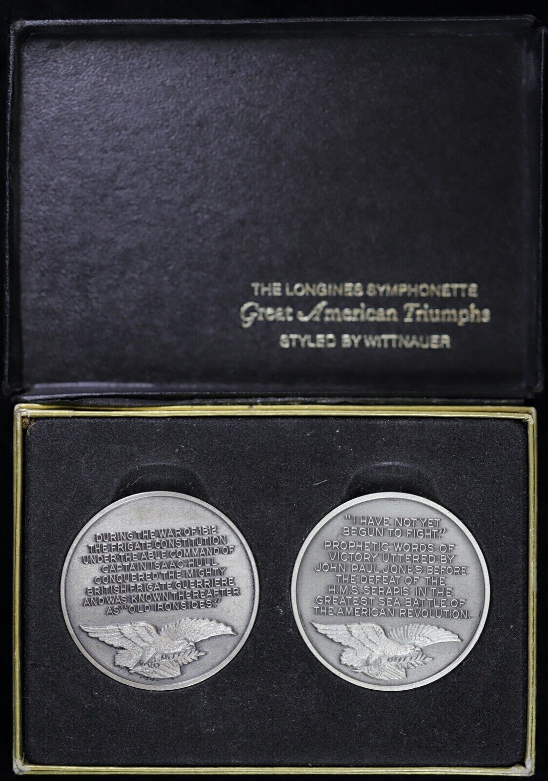 The Longines Symphonette Great American Triumphs Old Ironsides Ship 2 Medal Set