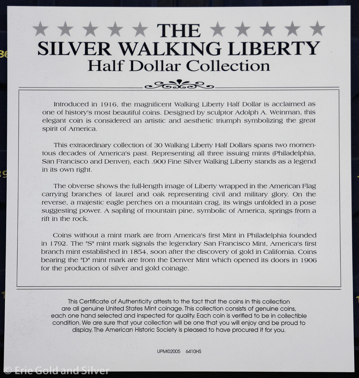 The Silver Walking Liberty Half Dollar Collection Album & COA Only