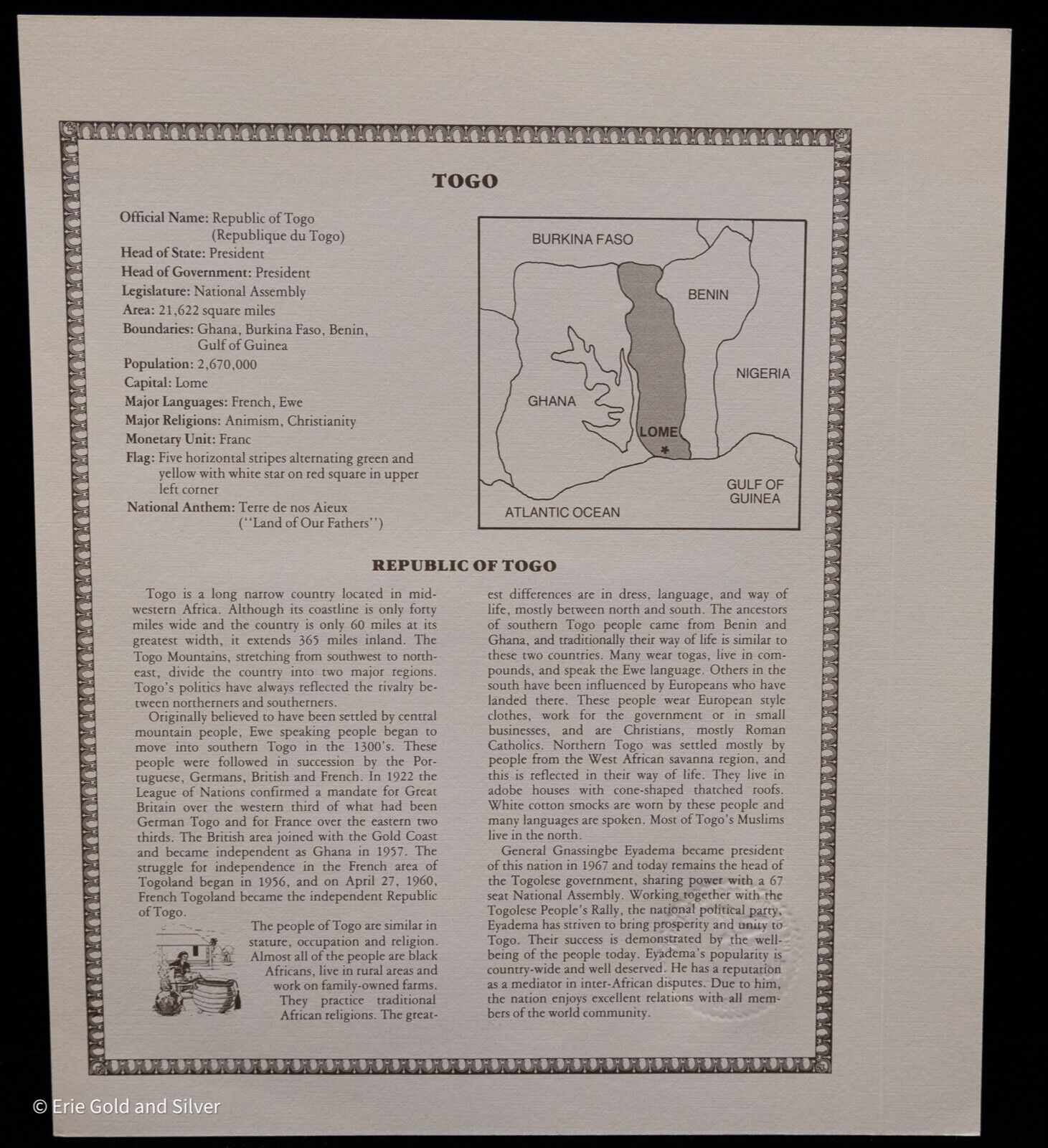 Togo 1984 West Africa 500 Francs Flag Series FDI First Day Issue UN 22c Stamp