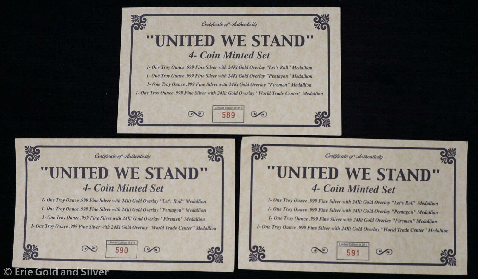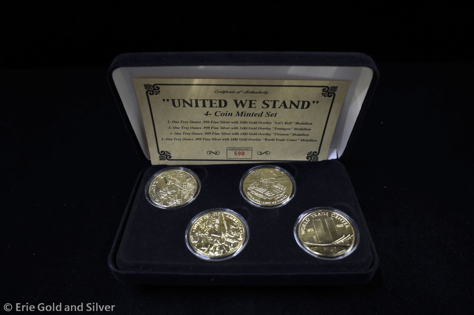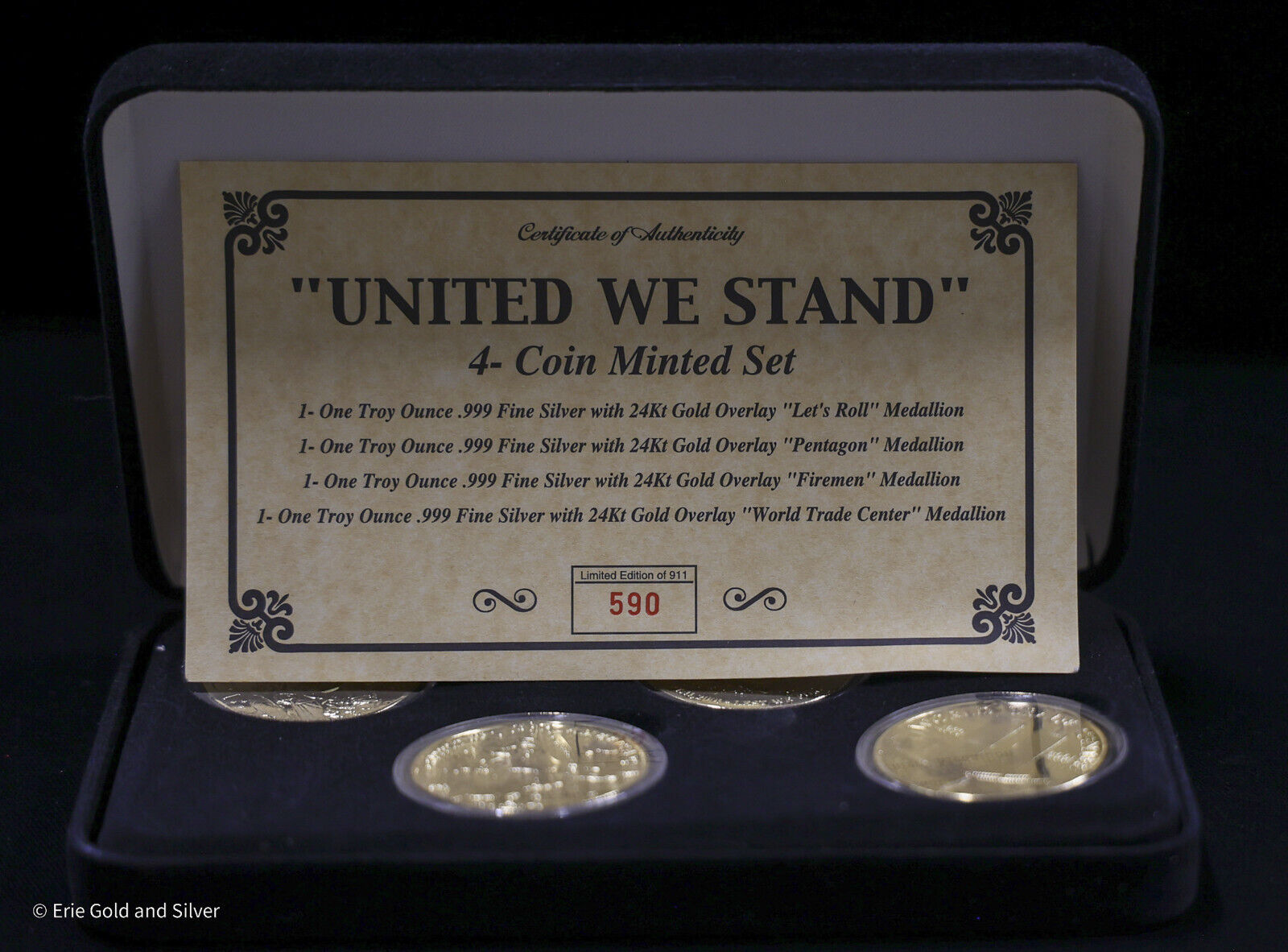 United We Stand 9/11 Set Of 4 1 oz .999 Silver Gilded set Limited