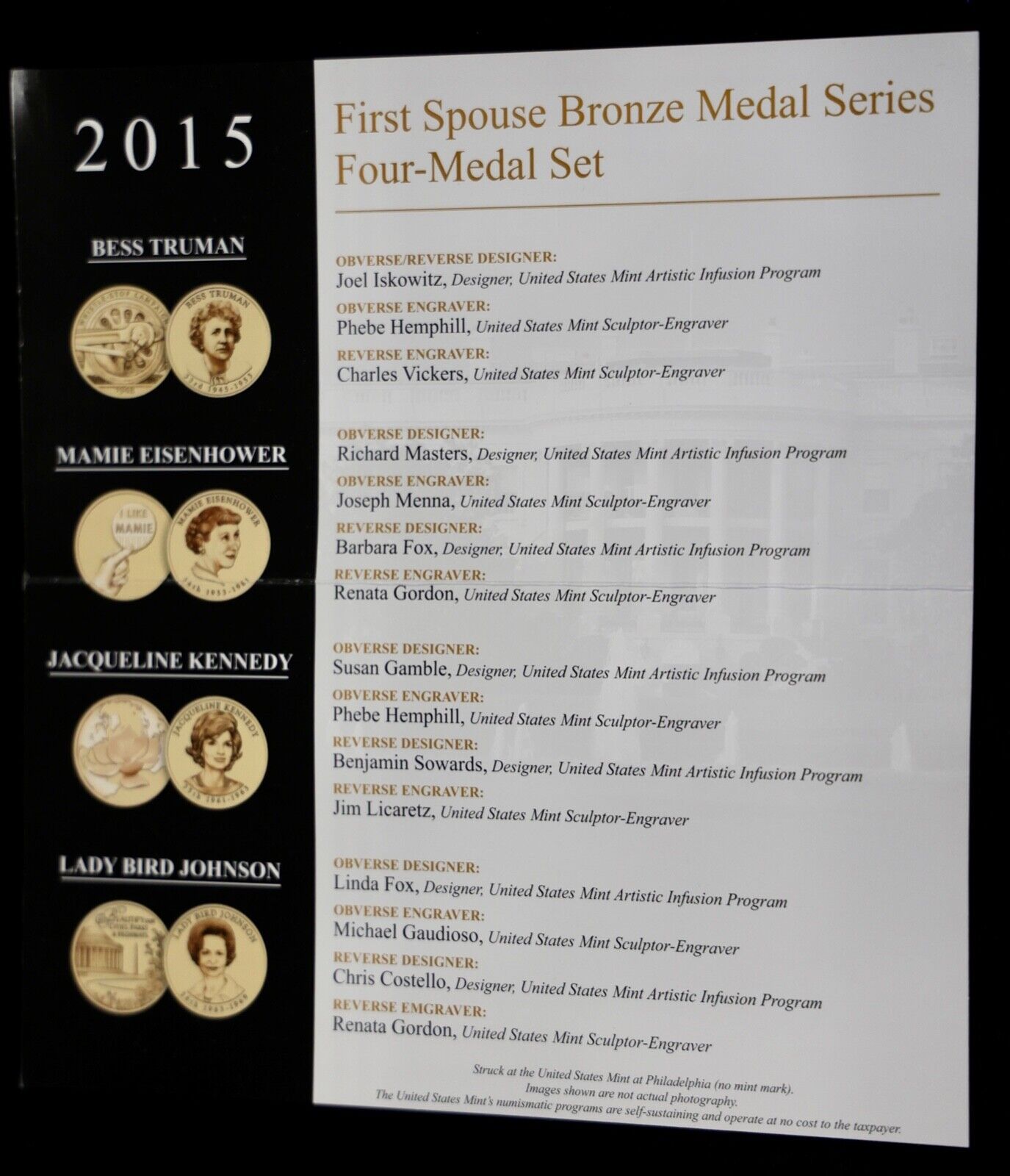 US Mint 2015 First Spouse Bronze Medal Series Four-Medal Set in OGP