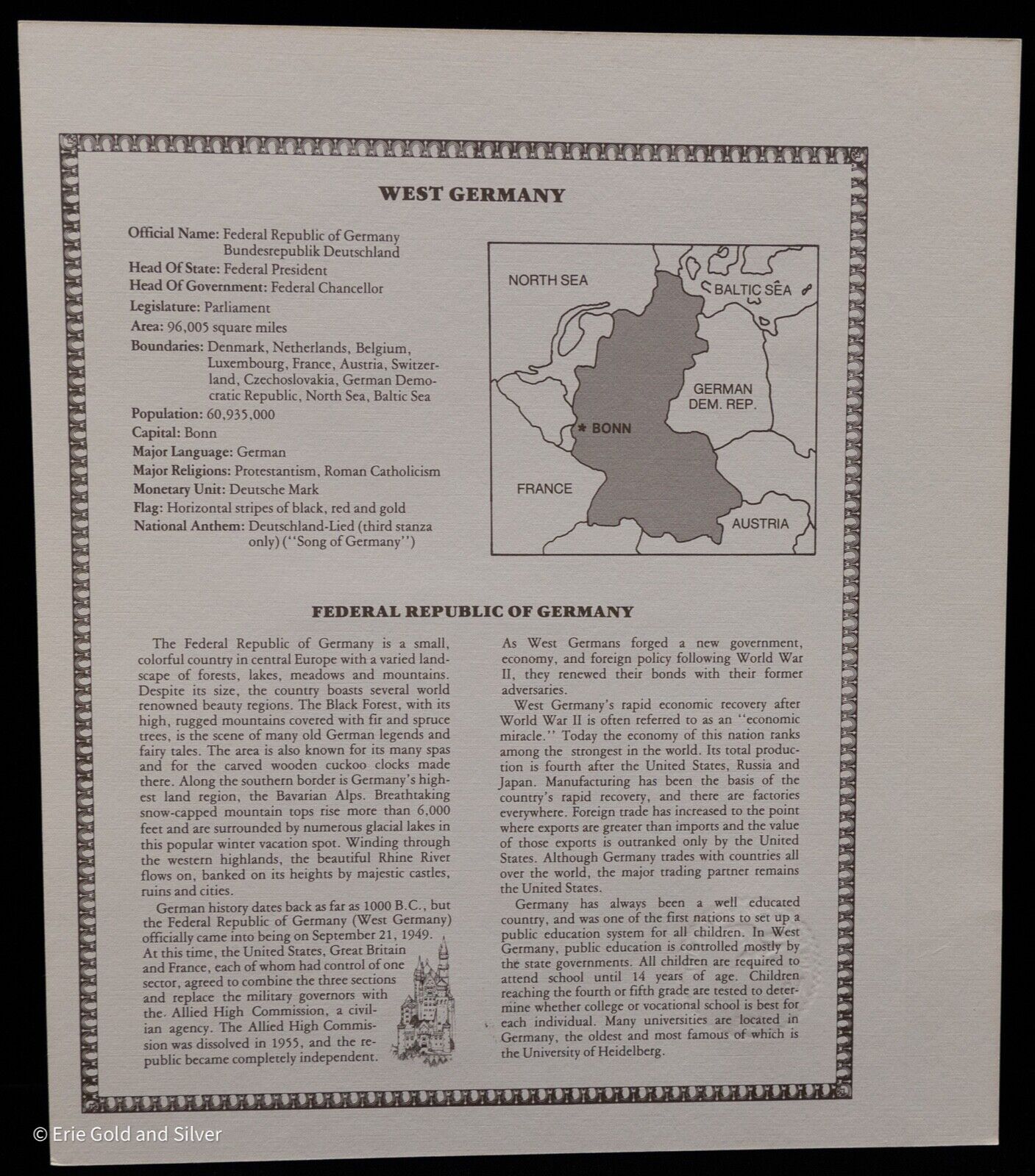 West Germany 1980 5 Marks Flag Series FDI First Day Issue UN 22c Stamp