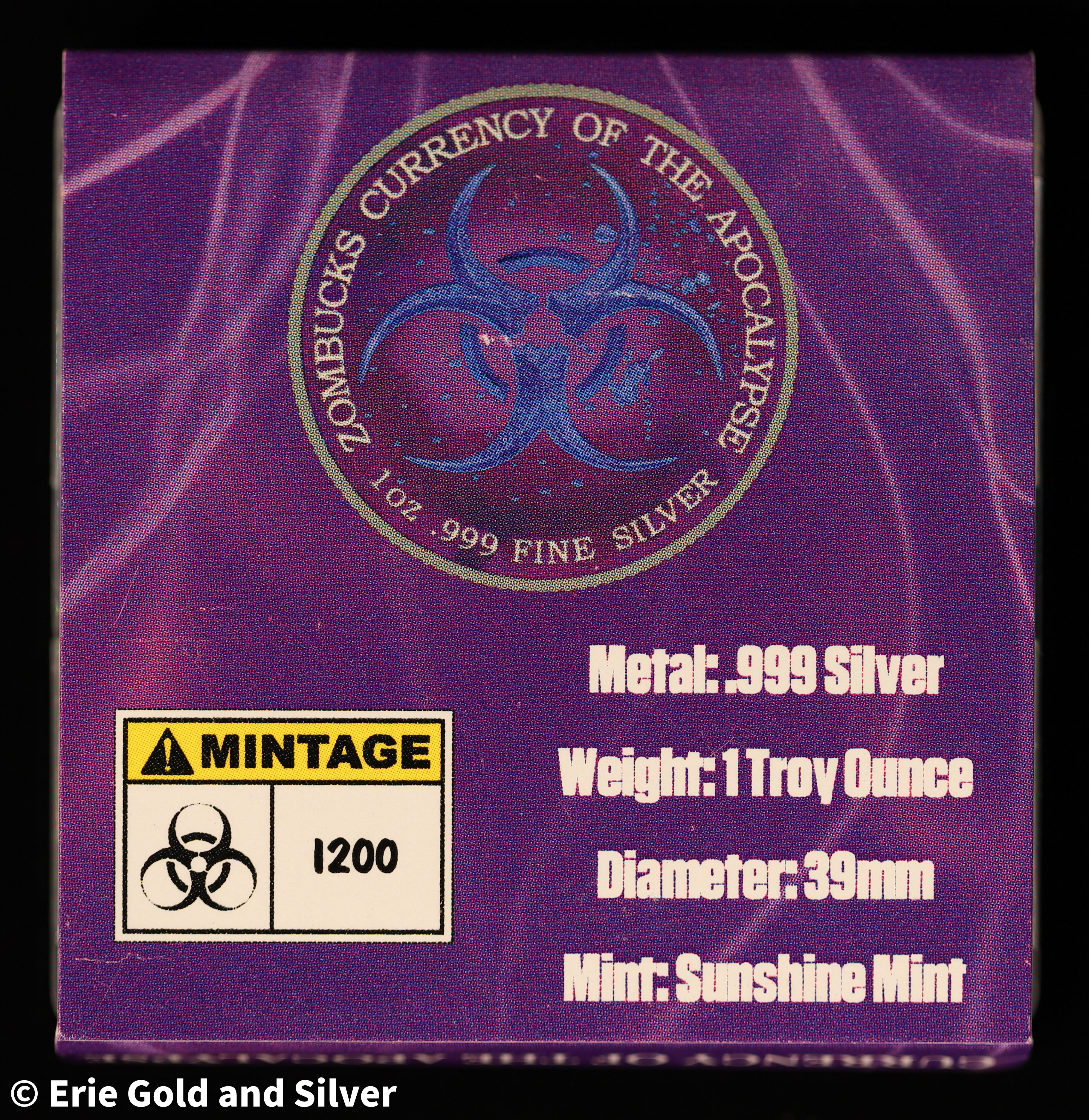 The bull market has risen from the grave—introducing the Zombull, a gory twist on the classic investment icon! Part of the Zombucks World limited series, this 1 oz .999 fine silver round features vivid colorized detail and a post-apocalyptic redesign that fuses financial strength with undead chaos. Whether you're stacking silver or collecting end-of-days art, the Zombull is a fierce, flesh-craving addition that charges straight into any Zombucks or bullion collection.